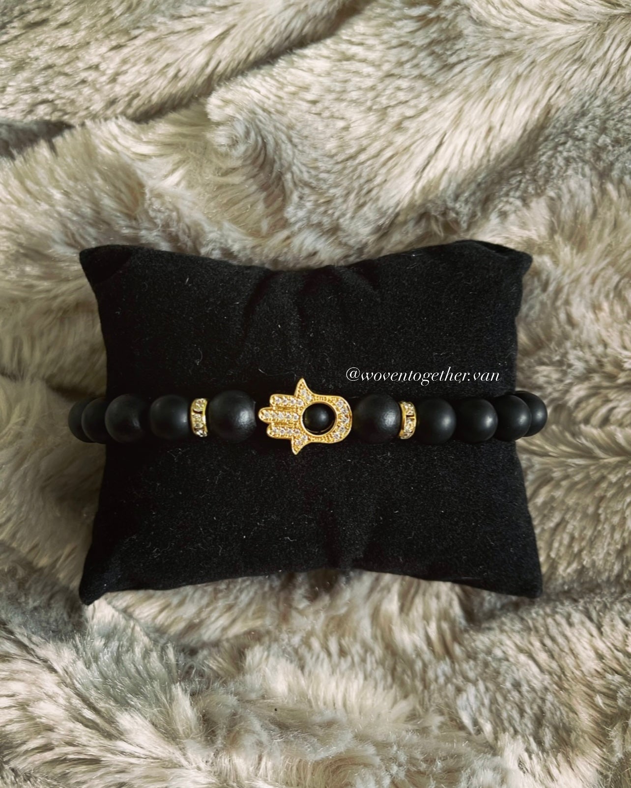 Gold Hamsa Hand x Black Bead