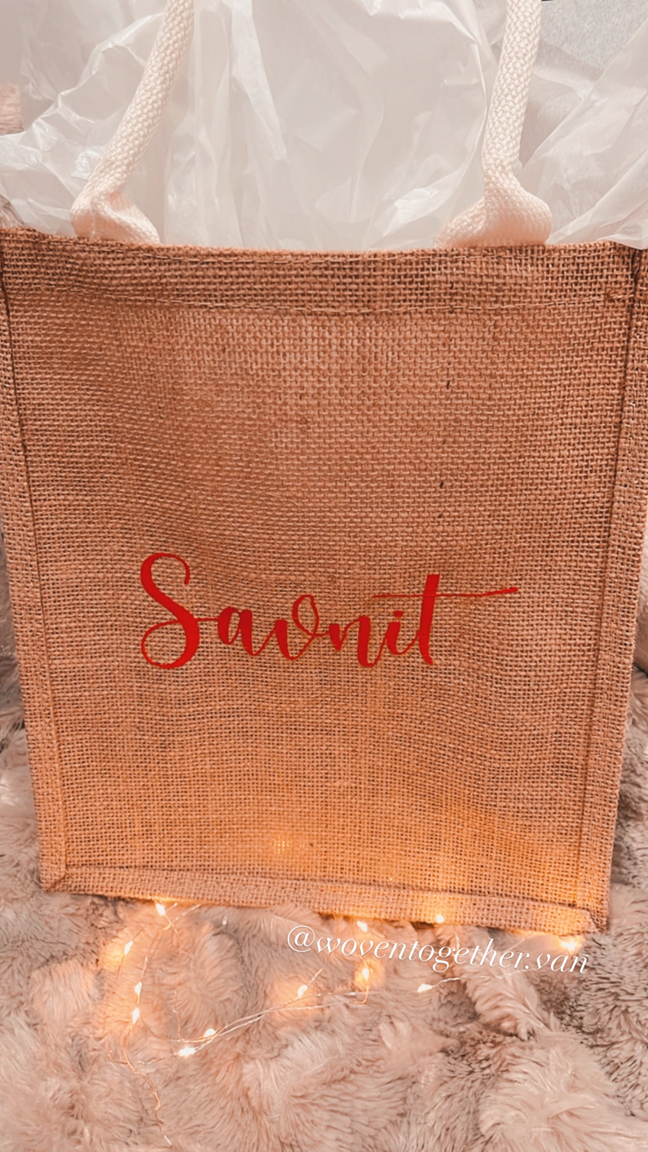Add this personalized jute rope gift bag to wrap your presents this year! The perfect way to wrap gifts this year to reduce gift wrap waste and gift a personalized reusable bag at the same time!